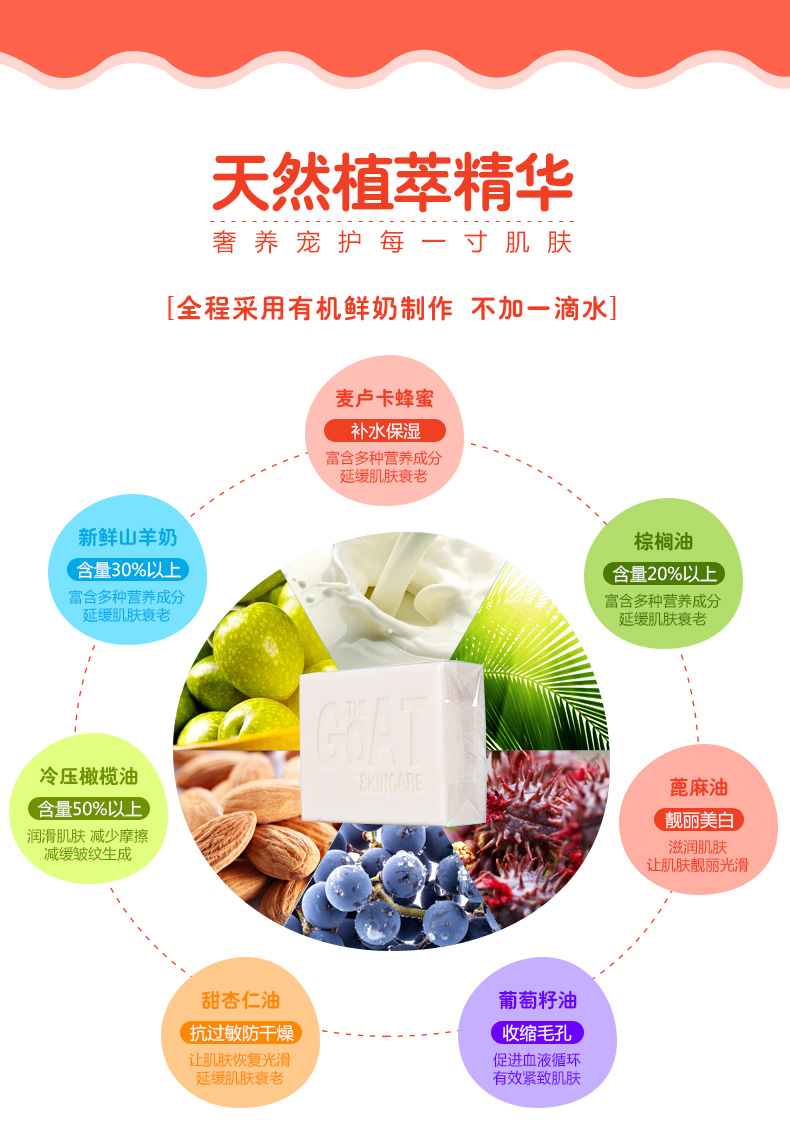 羊奶含有丰富营养价值,包括蛋白质、氨基酸、奶酸,以及多种维他命,是公认的天然的抗氧化剂,能滋养皮肤、保湿和帮助皮肤维持养分,