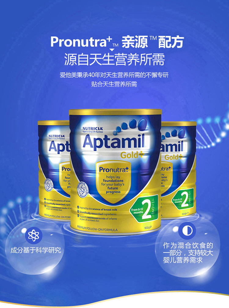 【澳洲仓】【3罐包邮】Aptamil Gold 金装爱他美2段 奶粉