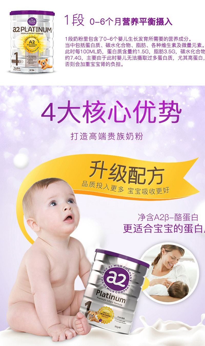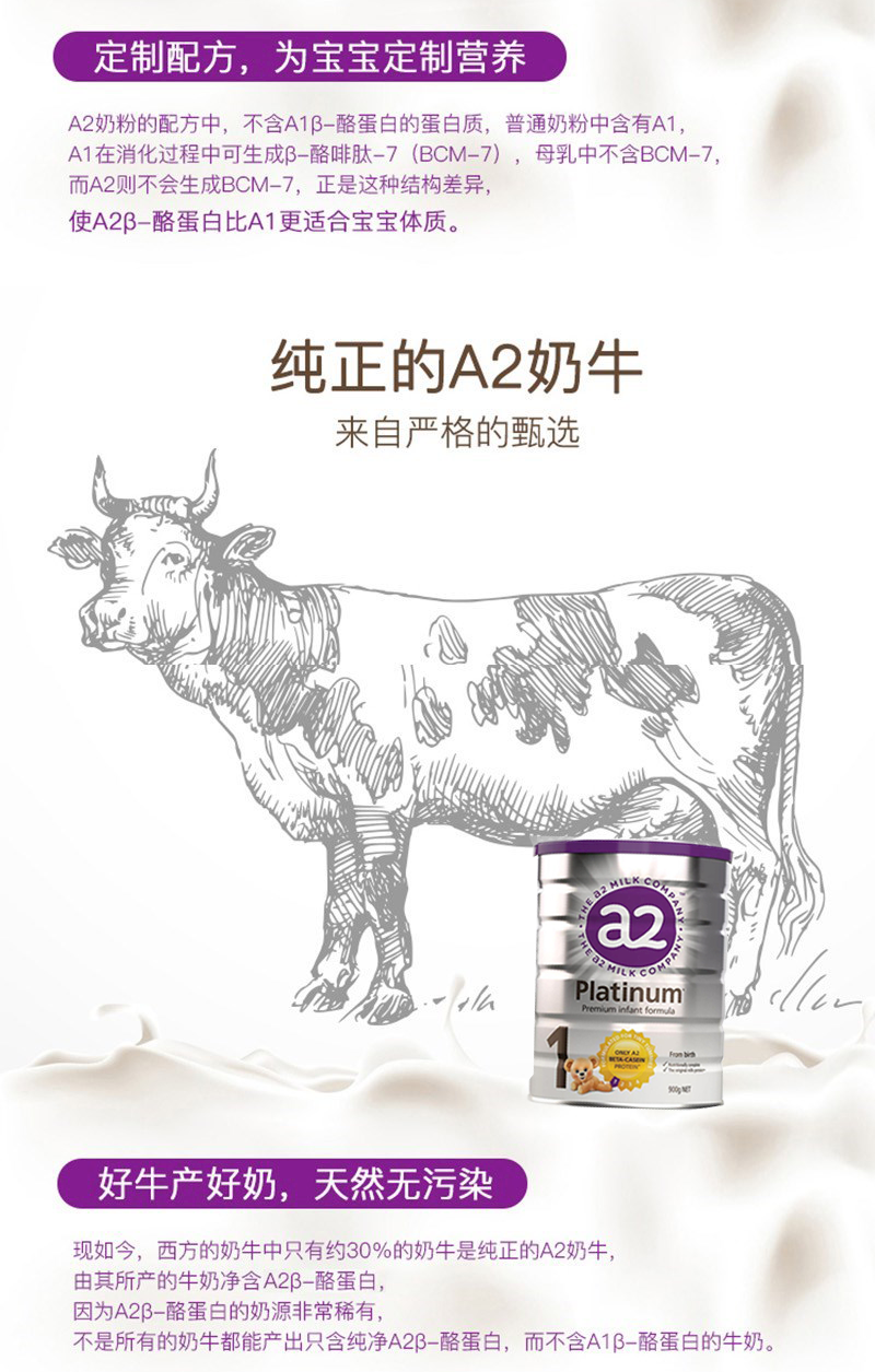 【澳洲仓仓】【1罐包邮】A2婴儿奶粉白金系列牛奶粉 1段