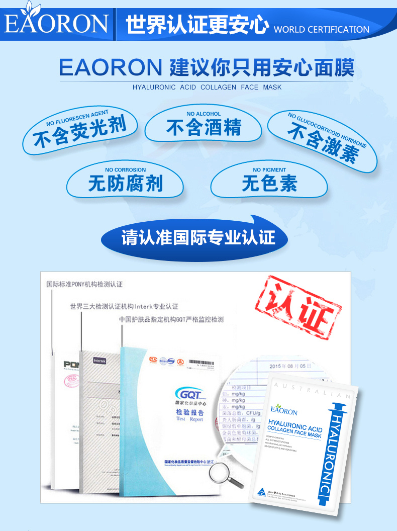 • 【澳洲仓】EAORON水光针补水保湿面膜(白面膜)(25ML*5片装)